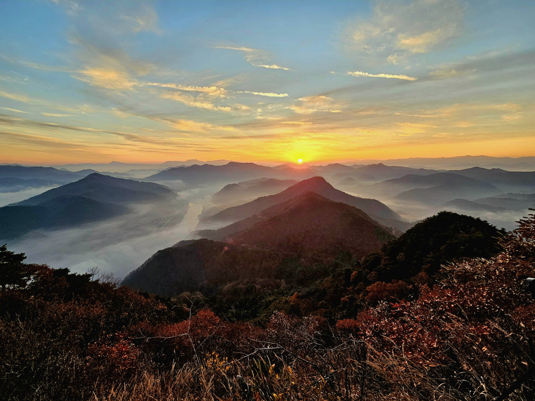 이곳 어깨산은 바로 옆에 경부선 금강휴게소가 인접해있고 금강물줄기가 흐르고있어 운해가 잘들어오는 곳이지만 대부분 운해의 그 높이가 높아 산끝 봉우리만 조금나오기에 방방한 운해 사진들이 인별에 흔하다는...