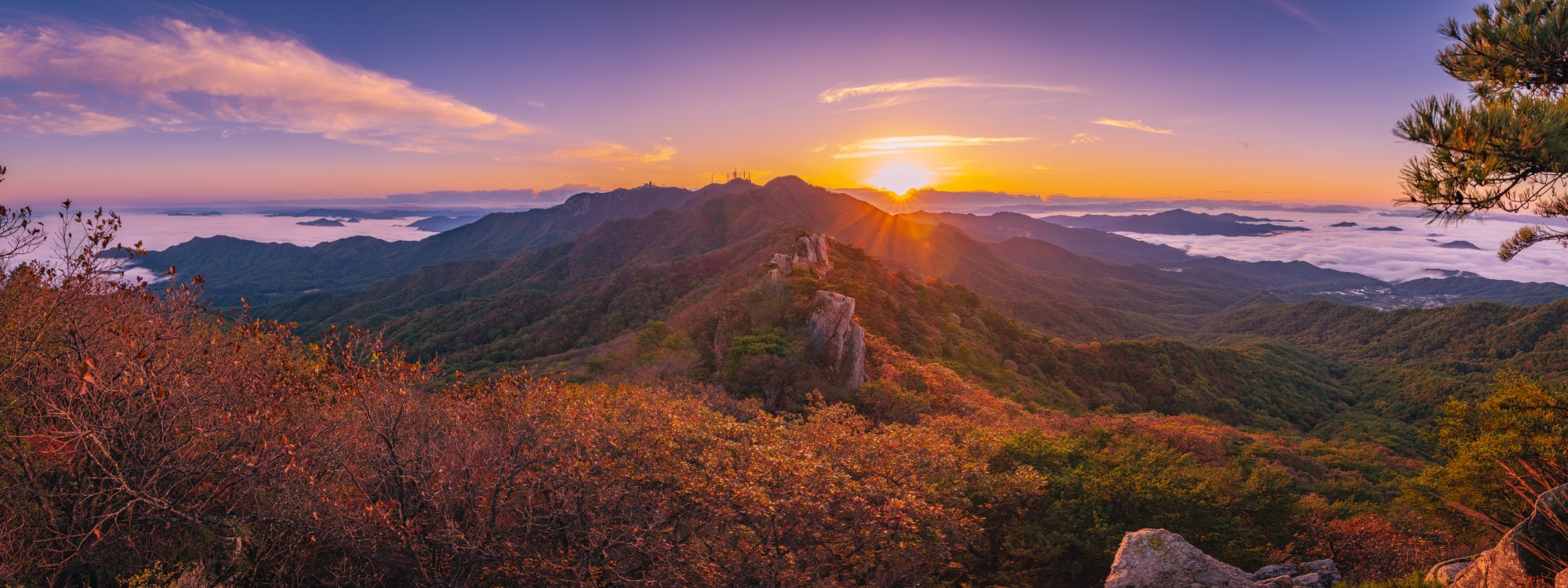 아침에 비로봉 주위로 운해는 좋았는데 단풍도 시원찮고 톱날능선을 넘어가는 운해도 없어서 아쉬웠습니다.