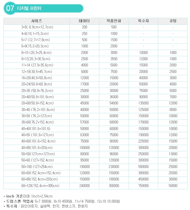 제가 아는 출력소 몇곳의 인화물 가격표를 우선 찿아 봤습니다.