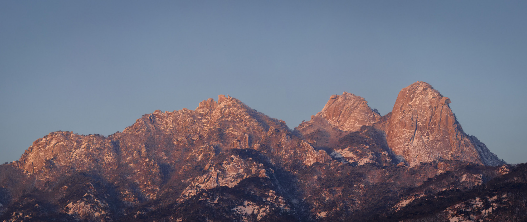 오늘 아침 우이동에서 일출빛 받은 북한산 한 컷하고